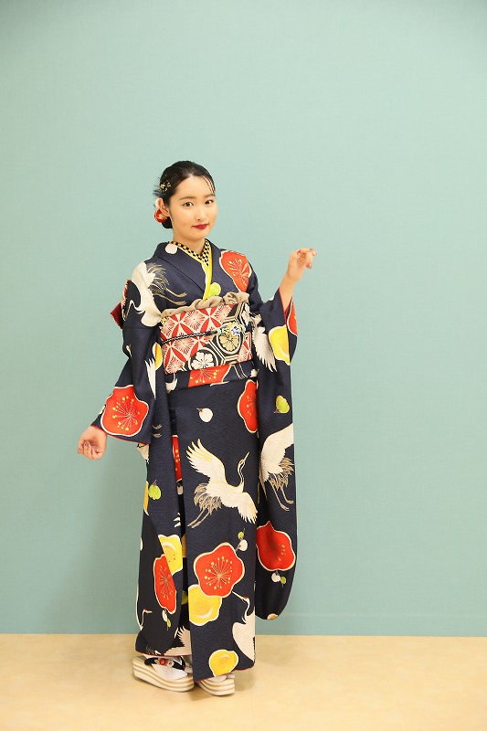 紺色の振袖には知的で凛とした雰囲気が振袖を着た姿を すらりと見せてくれます。
