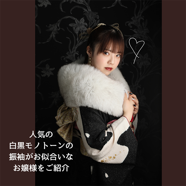 本日は人気の白黒モノトーンのお振袖がお似合いな