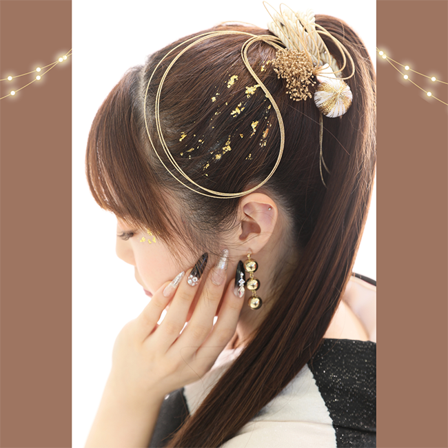 お嬢様の耳元にはゴールドの大ぶりのピアスが印象的に映えています。
