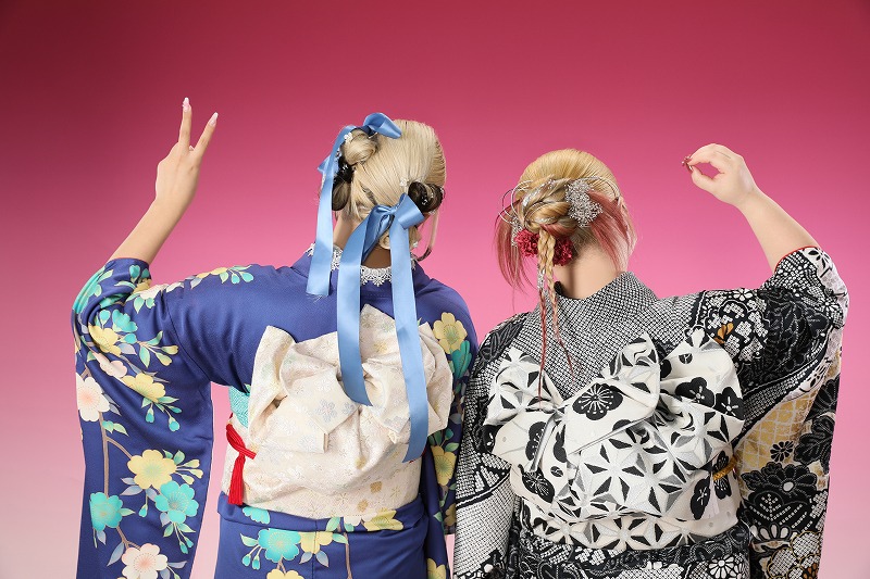 お2人とも違う雰囲気の振袖で、個性的でおしゃれでイマドキ◎