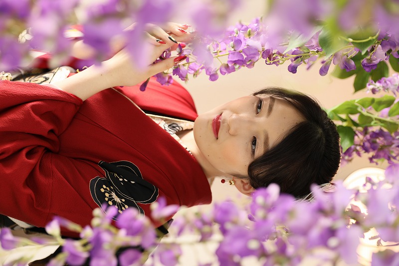 髪飾りやネイルも赤と黒で合わせてくださり、
