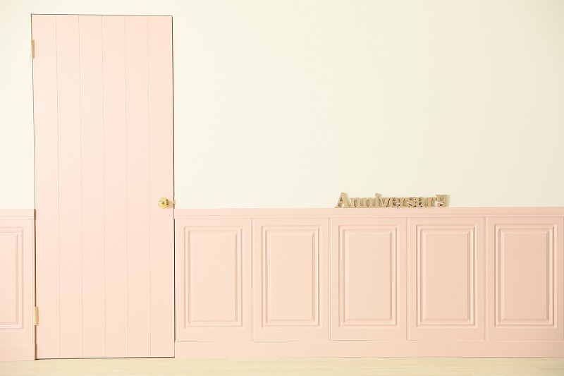 ピンクで可愛らしい写真を撮ることが出来るこちらの背景は、ドレスの撮影でも使用!