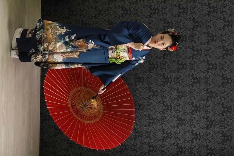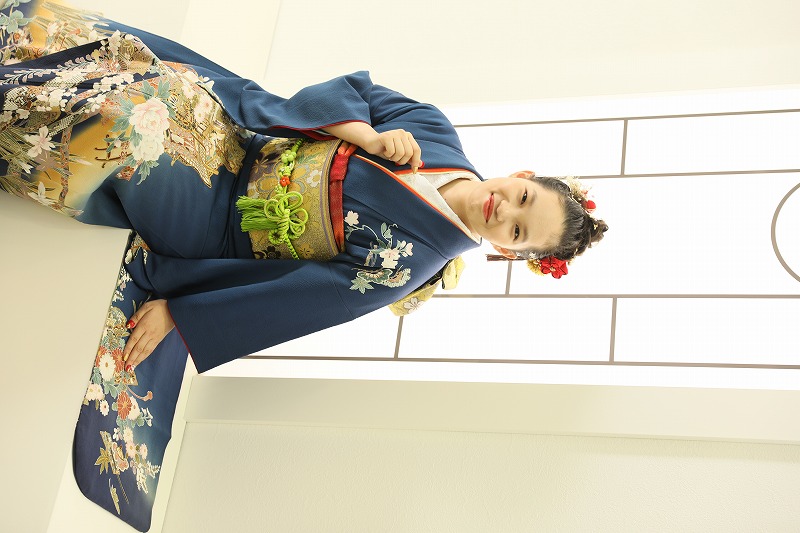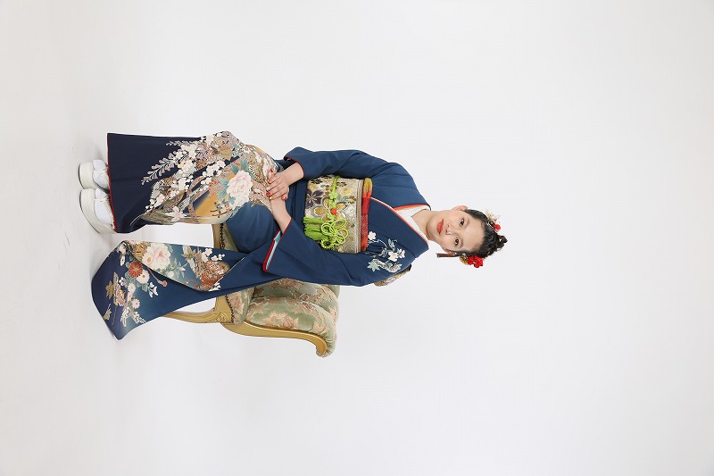 紺色の古典柄が素敵な持ち込みの振袖です!