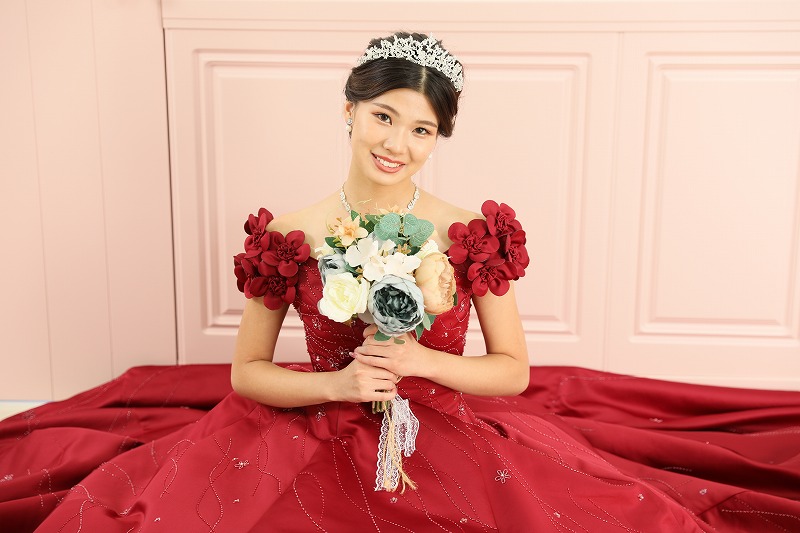 真っ赤なドレスで大人っぽくもあり
