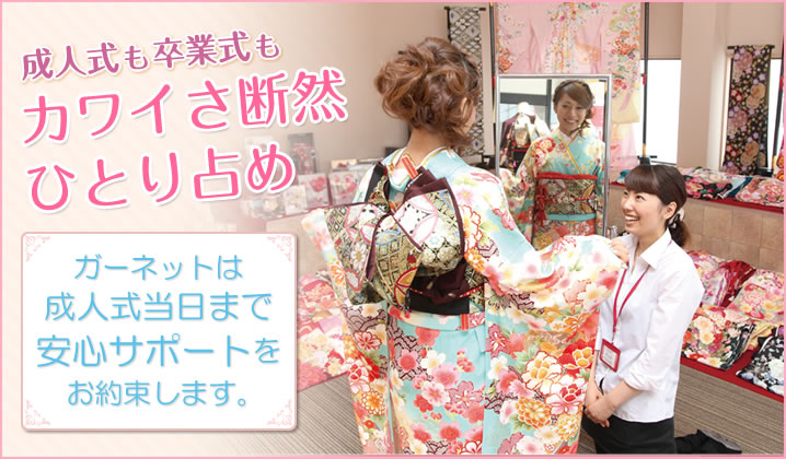 では早速、本日は持込の振袖で、クリーム色で小花柄の可愛い振袖の