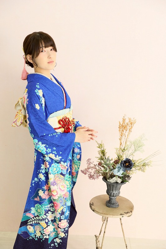 青振袖に華やかなコーディネートをしてくださったお嬢様です!