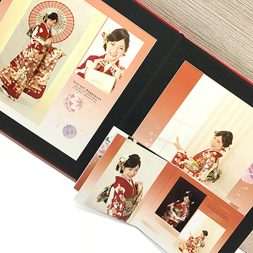 こちらの成人式のお着物らしい赤を基調とした”茜”というアルバムです!