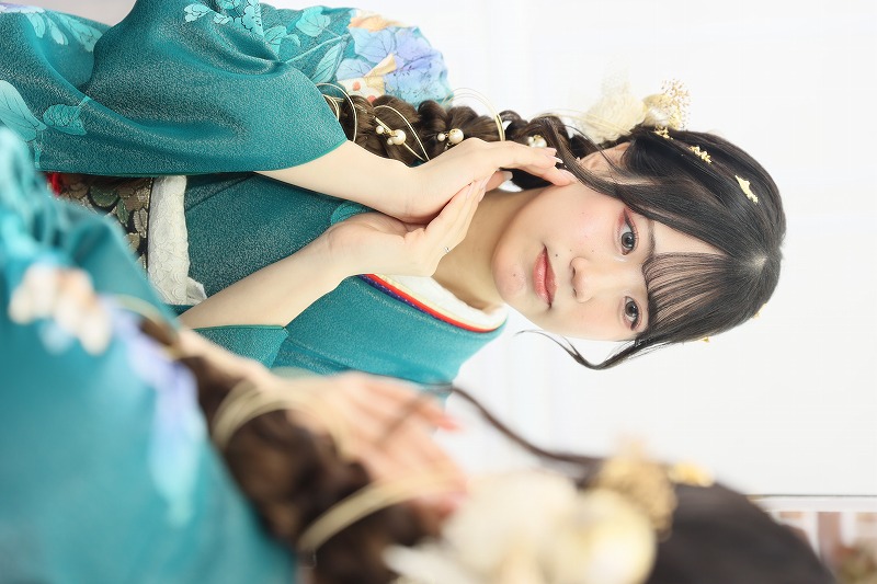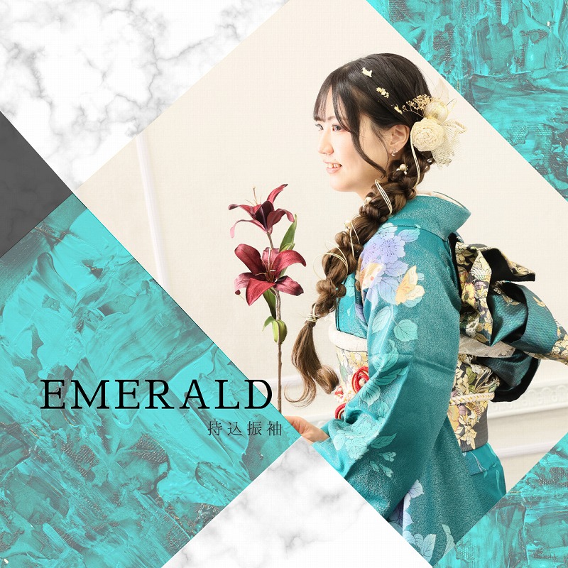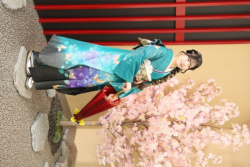 エメラルドグリーンの振袖はめずらしいですし、