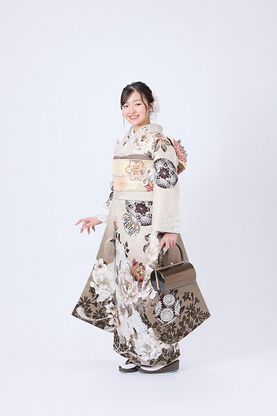 大人っぽく上品なベージュの振袖を着てくださり