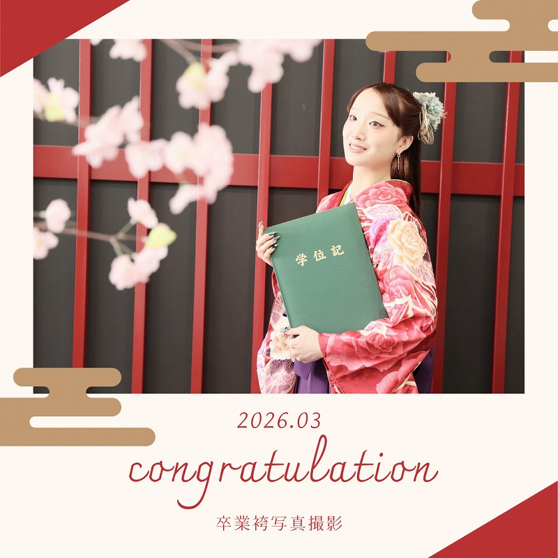 卒業式に着る袴のレンタル、撮影を行っております♪