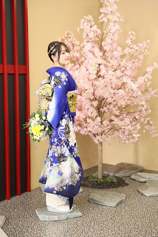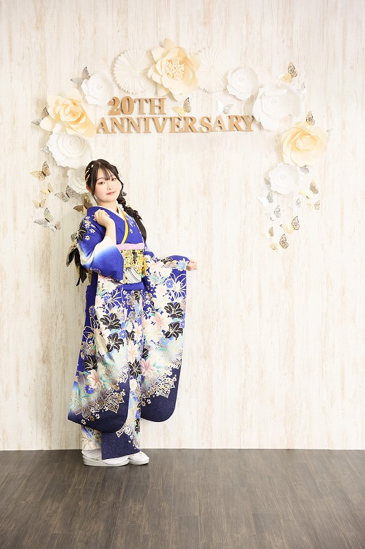 この記事では青の振袖を着てくださった