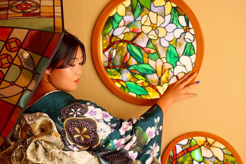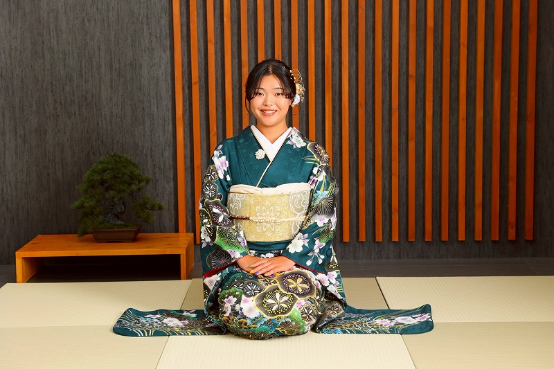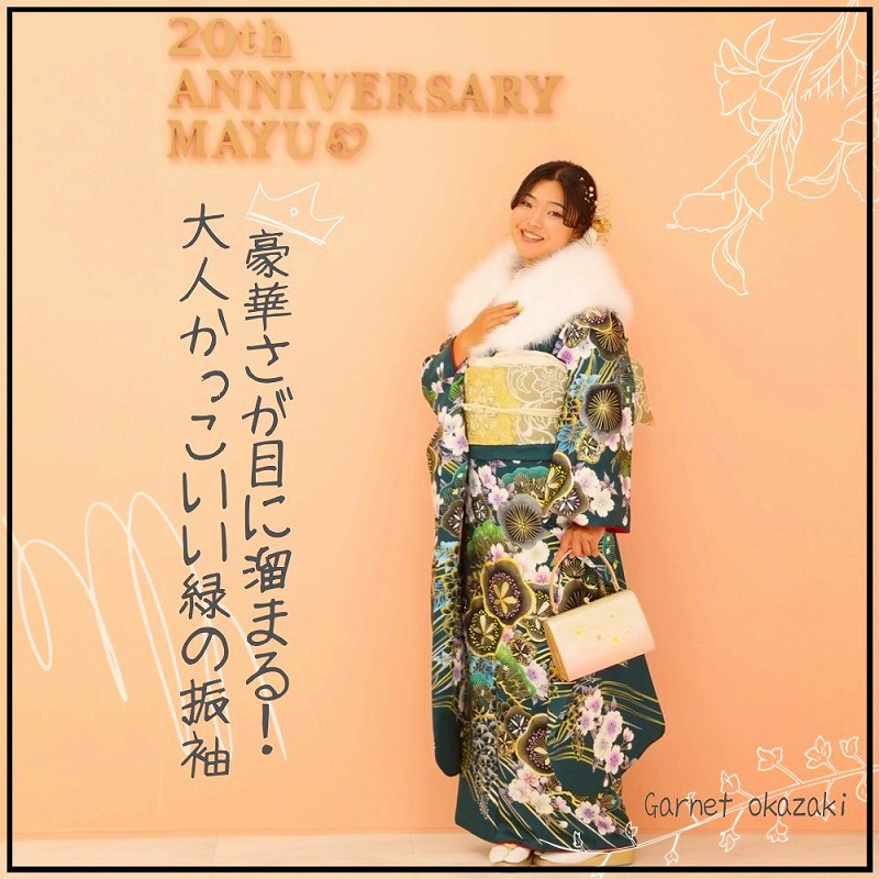 緑のかっこいい振袖がどの背景にもマッチしていました♡
