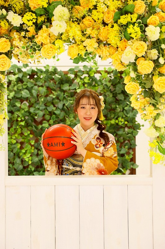 AMI様もバスケットボールを持った写真を