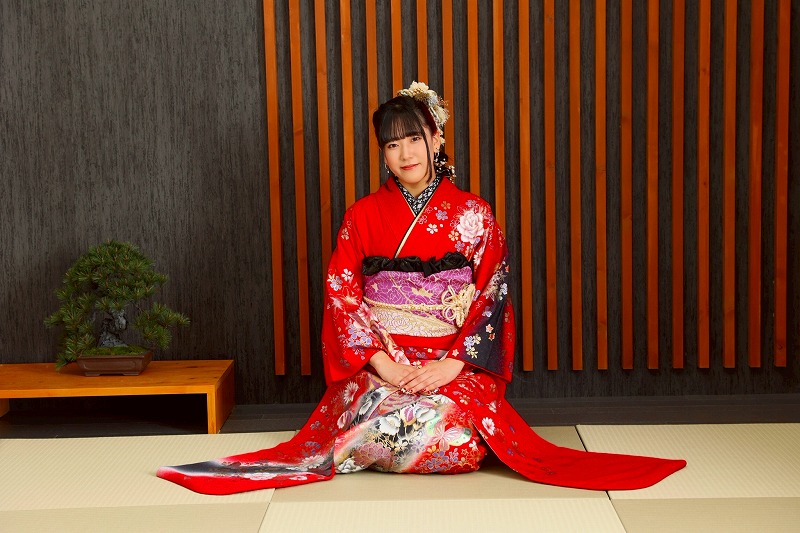 鮮やかな赤が目に留まる振袖で、