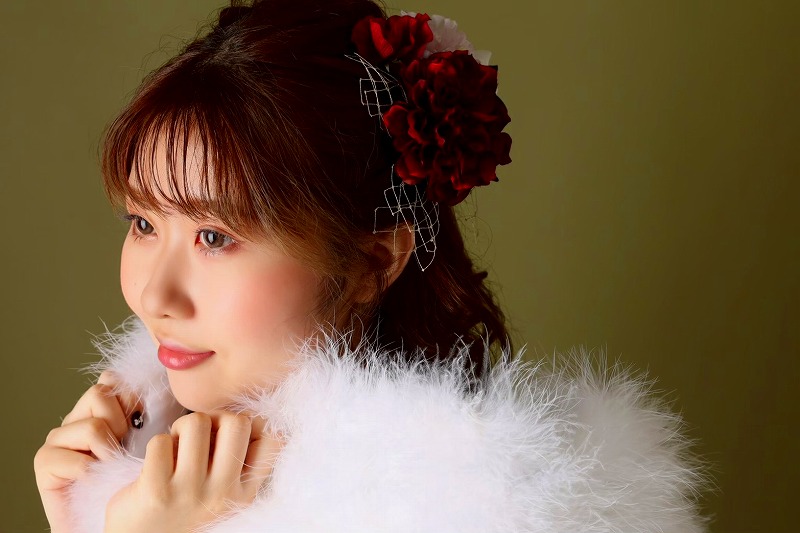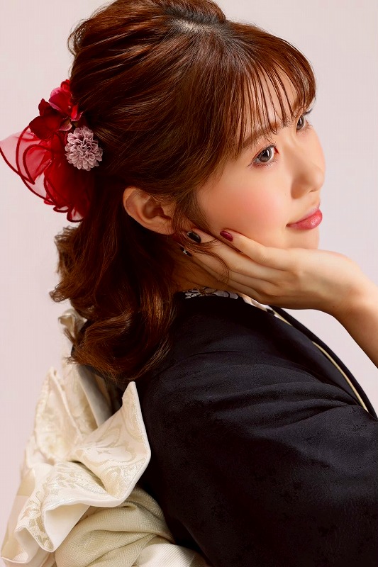 髪飾りも赤の物をご用意してくださって