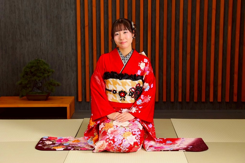 R様も赤い華やかな振袖を着てくださったので