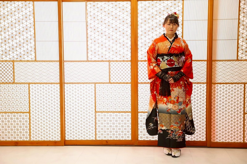 鮮やかで綺麗なオレンジ色の振袖に