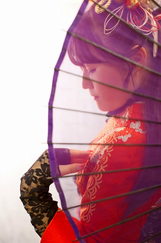 撮影小物の傘を使った目線を落とした写真や