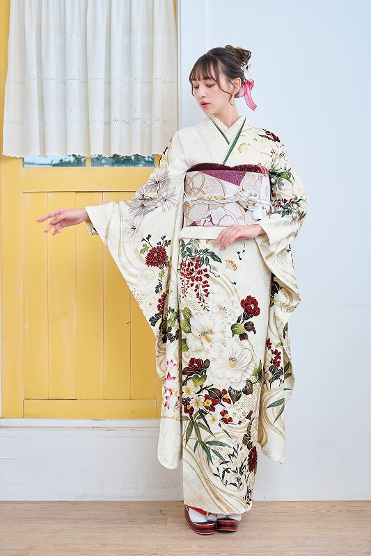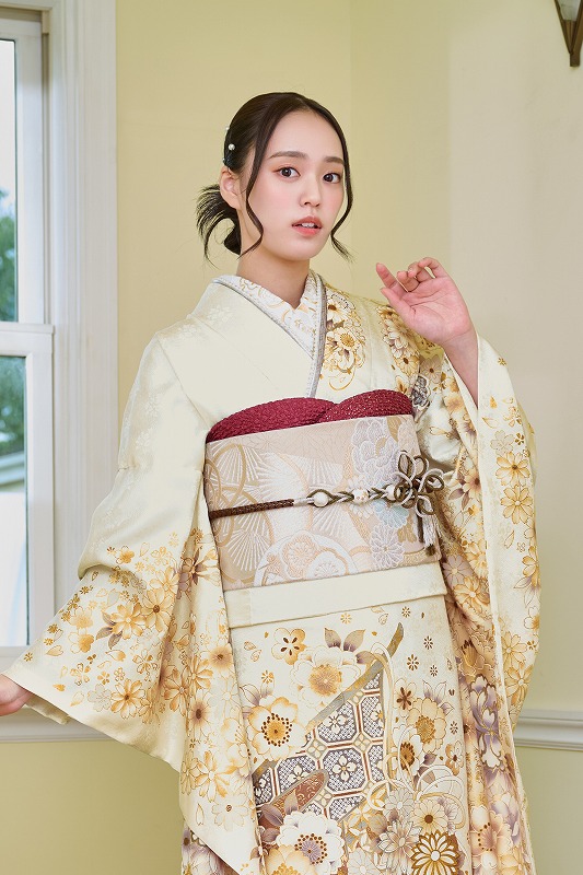 振袖・帯・小物を含めて、目立つ色は3色程度にまとめると統一感が出ます。
