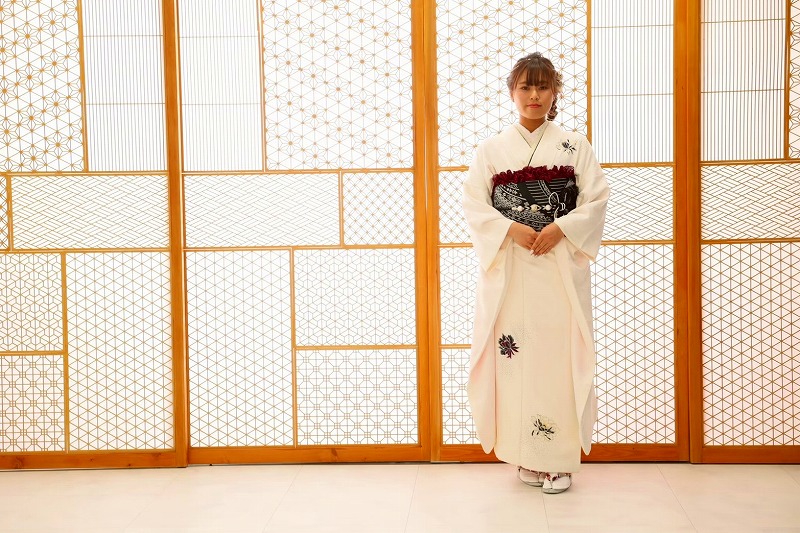 白の振袖は上品な印象になり、清楚な雰囲気!