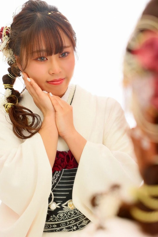 シンプルの白の振袖を着てくださったお嬢様♡