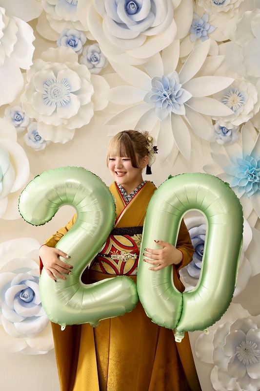 20やお花の可愛いバルーンと一緒に撮りました♡