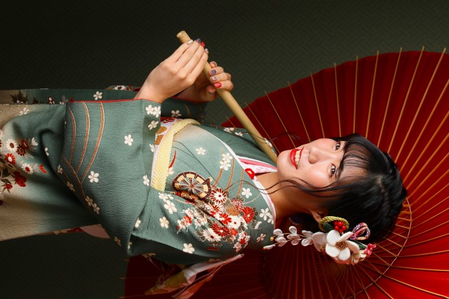 今回は、お持ち込みのお振り袖にかわいい小物でコーディネートしていただいた