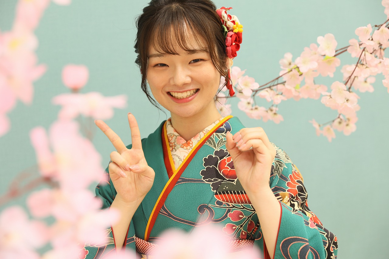 今回は、素敵な緑色のママ振りで撮影をしたお嬢様をご紹介いたします。