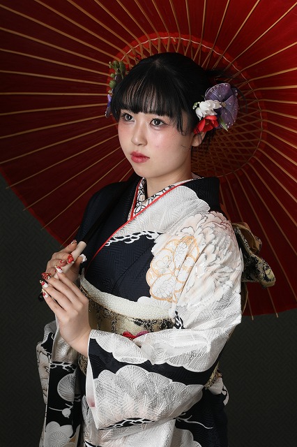 この記事では、大柄の黒地振袖を着てくださった