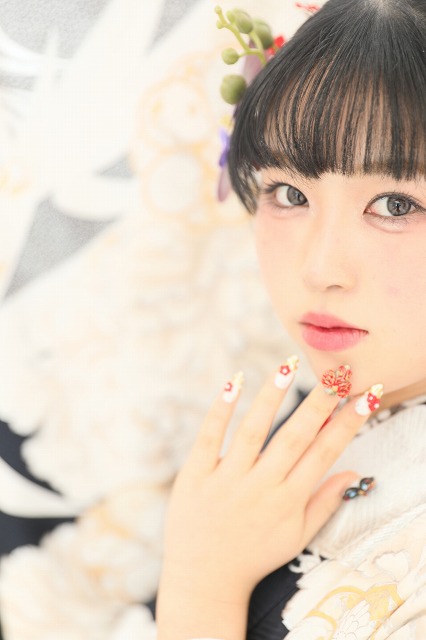 髪飾りやネイルもこだわって色を合わせて