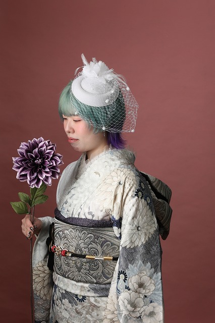 白とグレーで大人っぽく上品な印象になる今どき振袖を