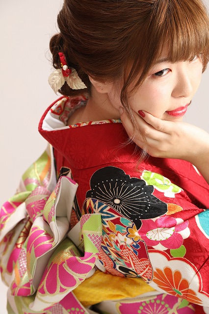 今日ご紹介するお客様は赤い振袖をお選びになりました。