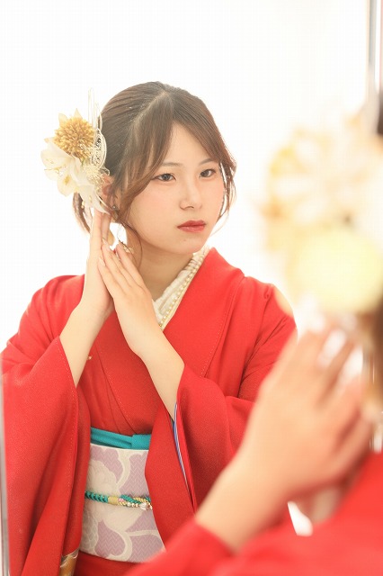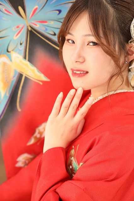 赤のリップも振袖に負けずに映えていました(*^^*)