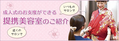 成人式当日は当店でも、もちろん行っていますが、提携先の美容院もご案内できます!