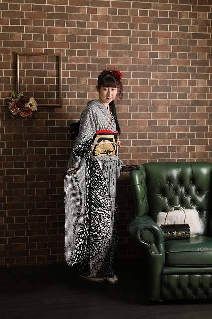 お着物の個性的な柄が引き立って素敵です(〃ω〃)