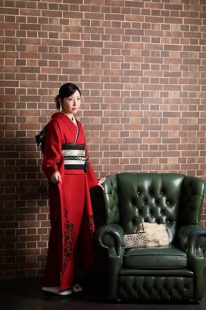 すっきりとシンプルの赤の振袖を着てくださり
