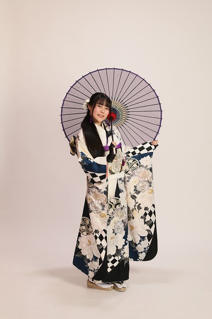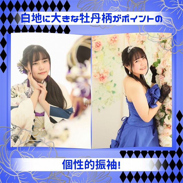 この記事では、白地に牡丹柄の振袖を