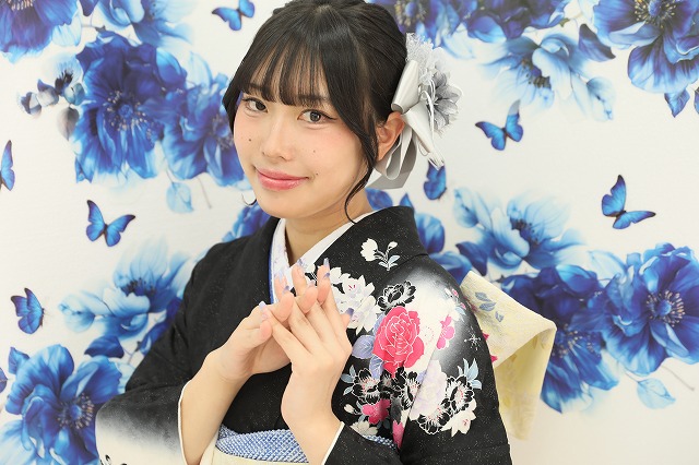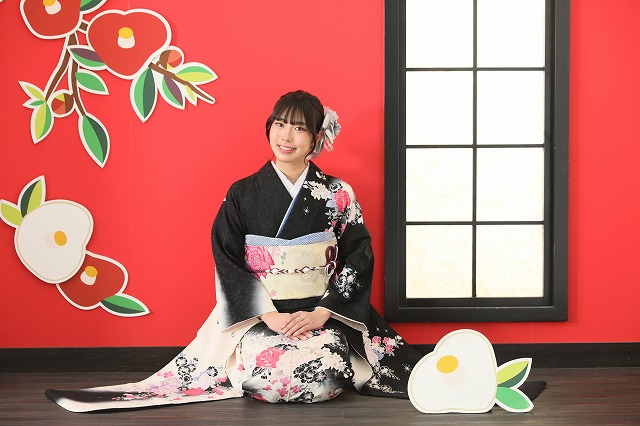 この記事では、黒地の振袖を可愛く着てくださった