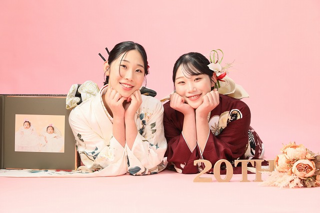 振袖で寝ころぶのもスタジオ撮影ならではで、