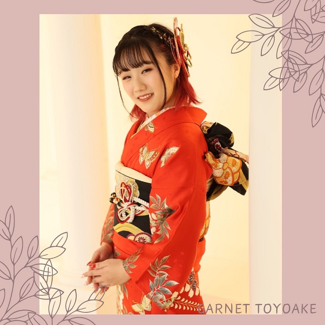 赤の振袖は柄や差し色によって雰囲気を変えることが出来ます。