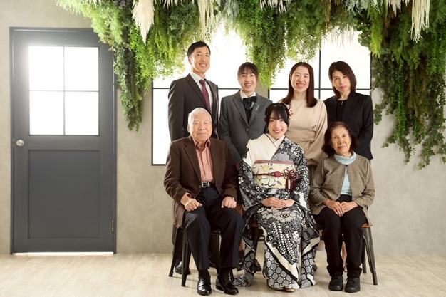 祖父母様も来てくださり7名での撮影で、