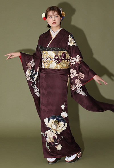 程よいシンプルさに際立つ裾に入った大きな柄がポイントになった大人っぽい振袖!