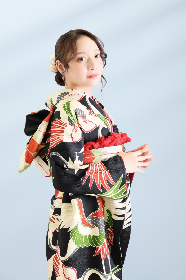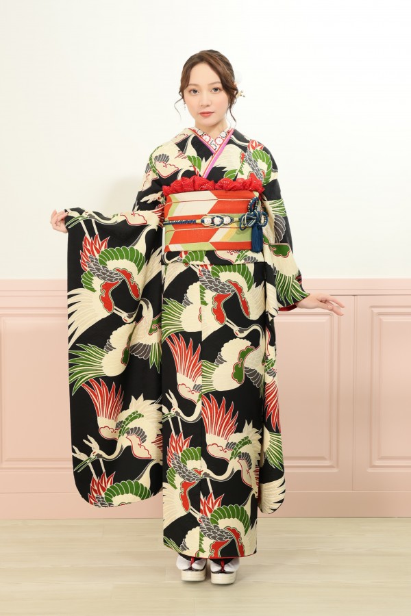 鶴が全体的に入った個性的振袖。人とは違う振袖を探している方におすすめ。
