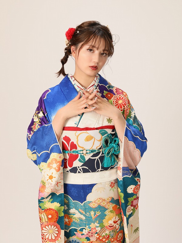 注目も集め、写真映えもするので、魅力たっぷりの寒色系の振袖は成人式にぴったり。