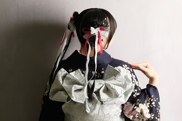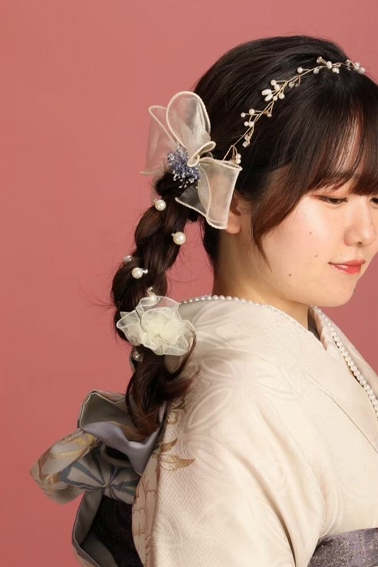 振袖の柄や色に合わせてリボンの素材や色を選べば、統一感のある美しいスタイルに仕上がります。