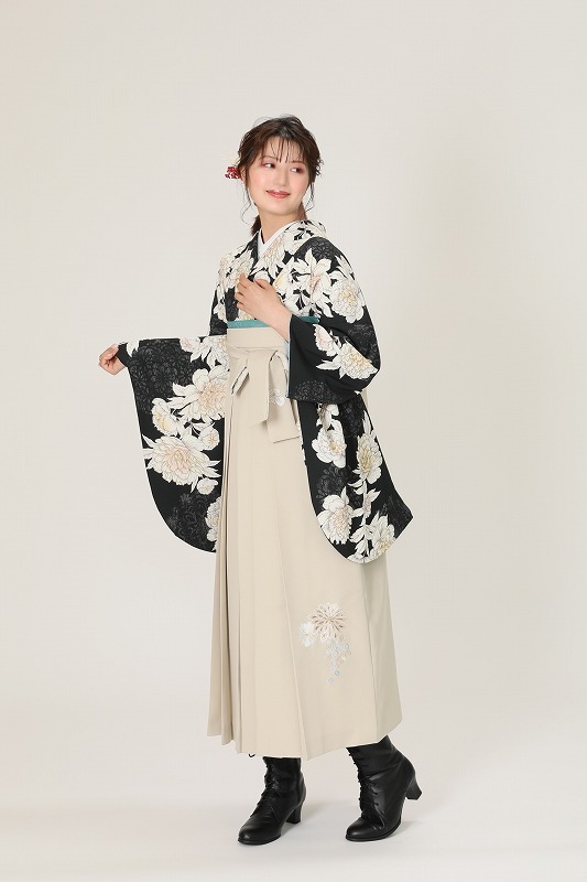 袴を合わせると一気にかっこいい雰囲気になります!黒やグレーの袴+シンプル柄の振袖が相性抜群です。足元をブーツにすると、凛々しさを感じさせます◎