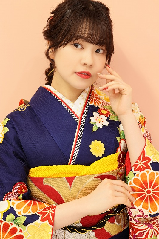 紺とのコントラストが強まり、一気に華やかな振袖姿に。古典的で豪華な雰囲気を出したい人におすすめの色味になりまます!