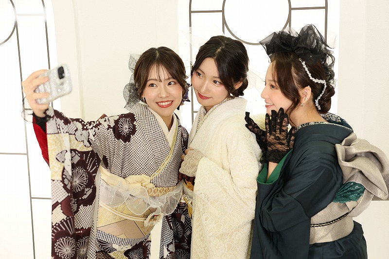 成人式で一番楽しい時間は、式の前後に友だちと写真を撮ることです。