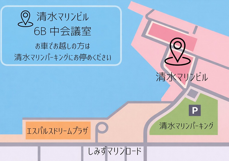 清水マリンビル 6B 中会議室にて開催いたします。