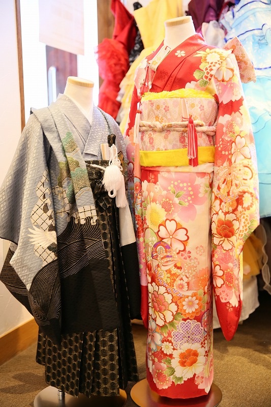 七五三コーナーにはお母さま人気の高い赤の着物を着せました!